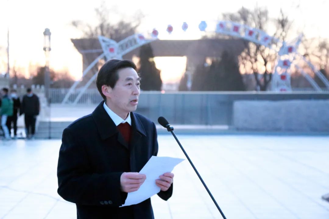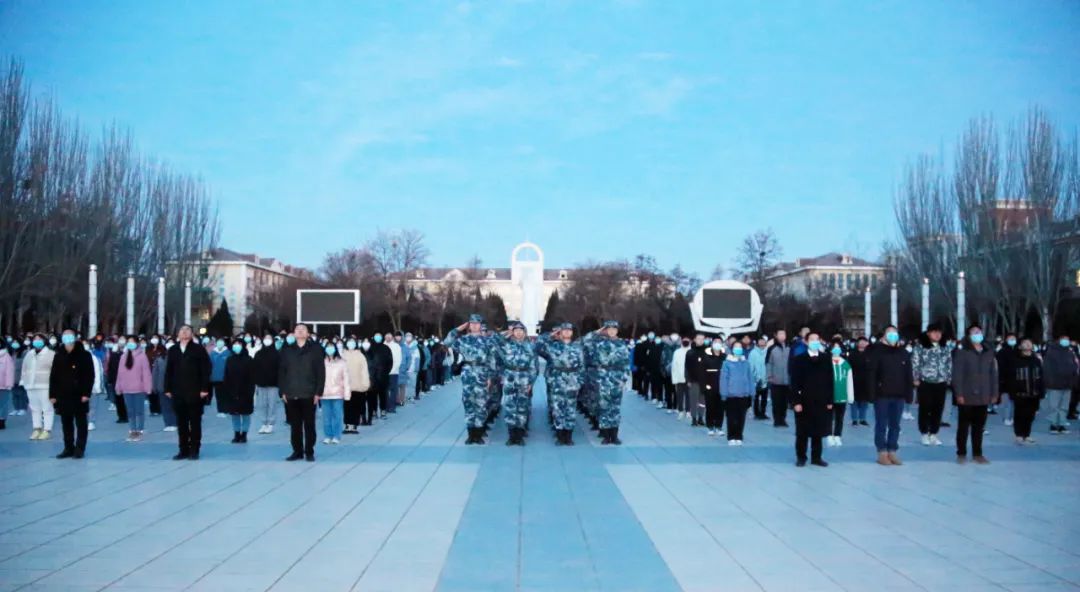 千帆竞驶别旧岁,奋楫笃行拓新途。2月21日清晨,银川能源学院在庄严的学政广场,隆重举行升国旗暨"开学第一课"活动。校党委副书记、执行校长孟兆怀,副校长董卫国,校党委委员、党政办公室主任赵桂生,学生工作部部长李全福,学生处相关负责同志及各二级学院师生代表参加本次活动,活动由学生工作部副部长、团委书记孙瑞主持。