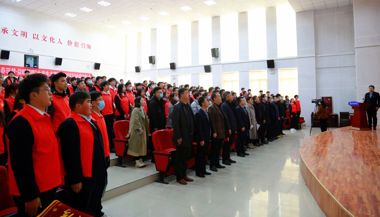 活动在雄壮的国歌中拉开帷幕,全体志愿者统一着装,现场汇聚成一片红色的海洋。与会人员观看了银川能源学院2021年志愿服务纪实《青春是我们的名片 服务是我们的志愿》。