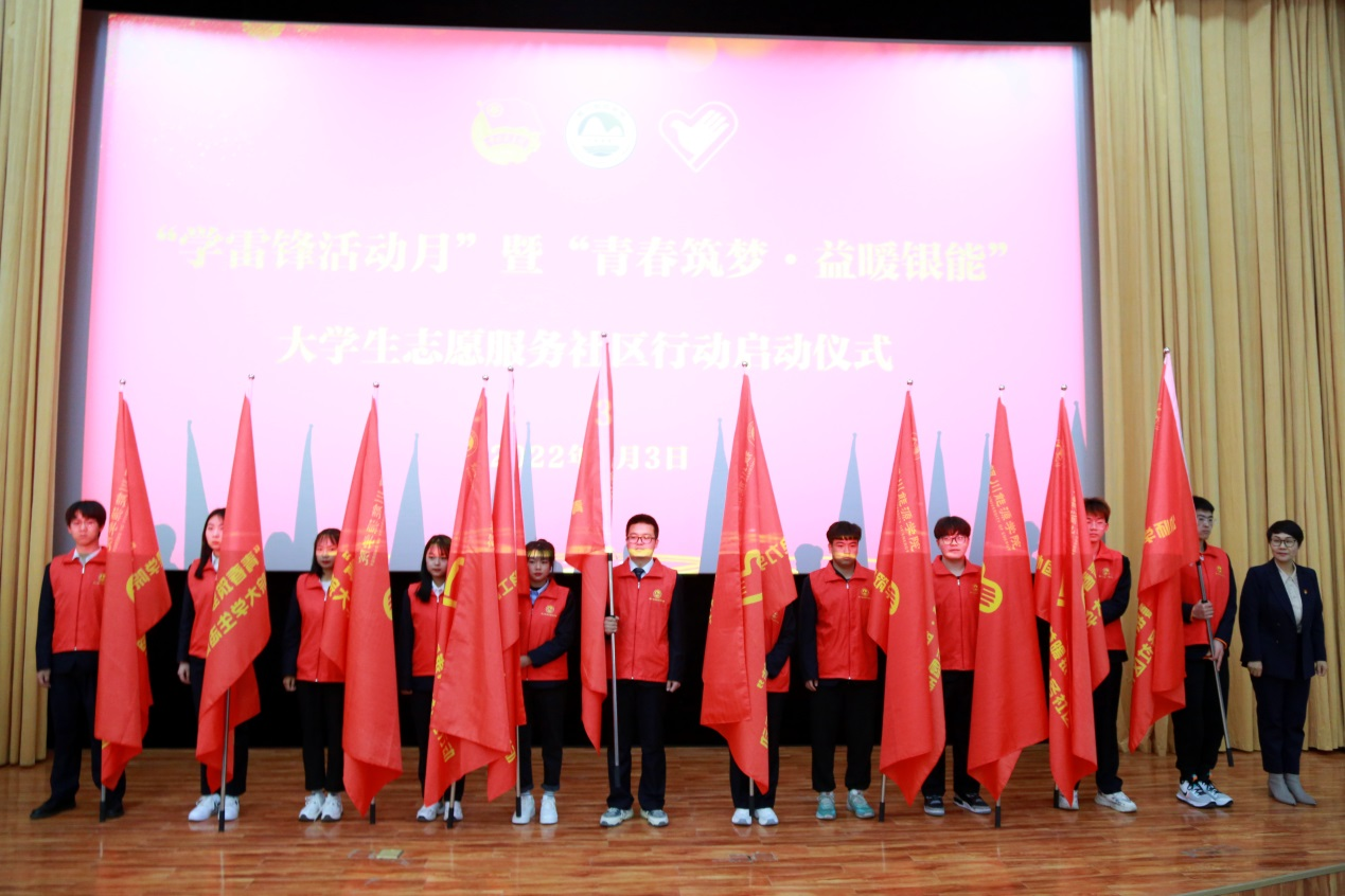 会上,党委委员、校长助理刘兆侠同志上台为大学生志愿服务社区行动授旗。