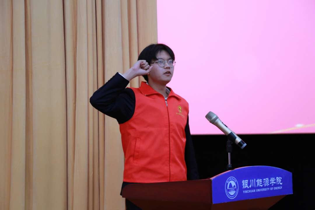 全体志愿者重温中国青年志愿者誓词,一句句铿锵有力的誓言在会场内回荡。