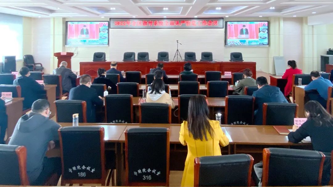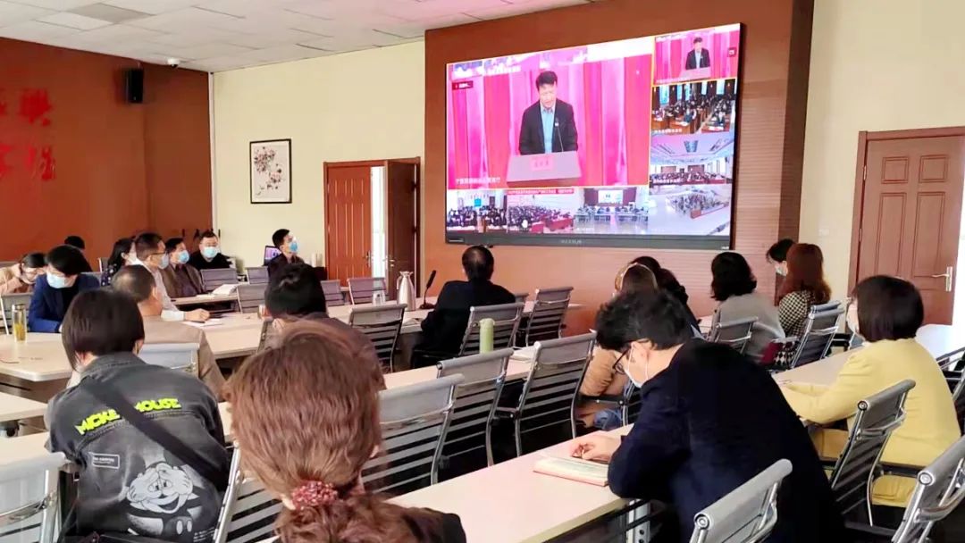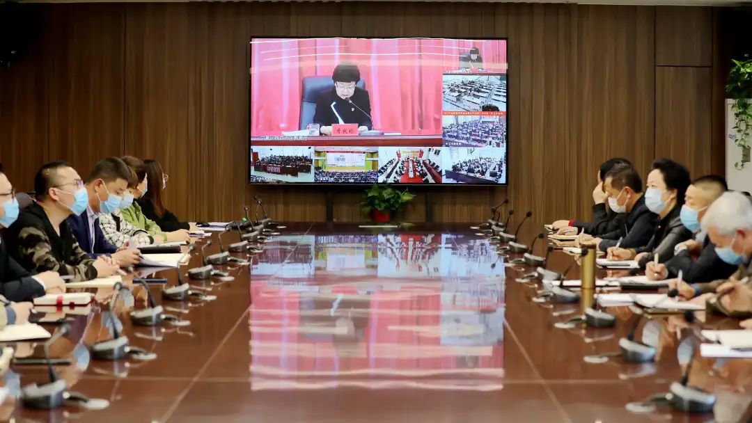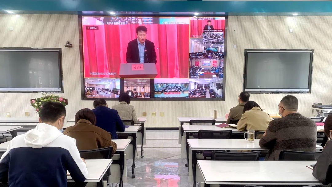 会议以视频形式召开,银川能源学院党政领导班子成员、中层干部、纪委委员在学校分会场参会。
