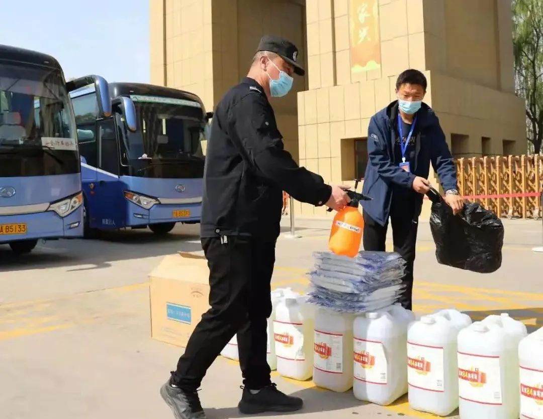 按照防疫规定,工作人员对物资进行消杀