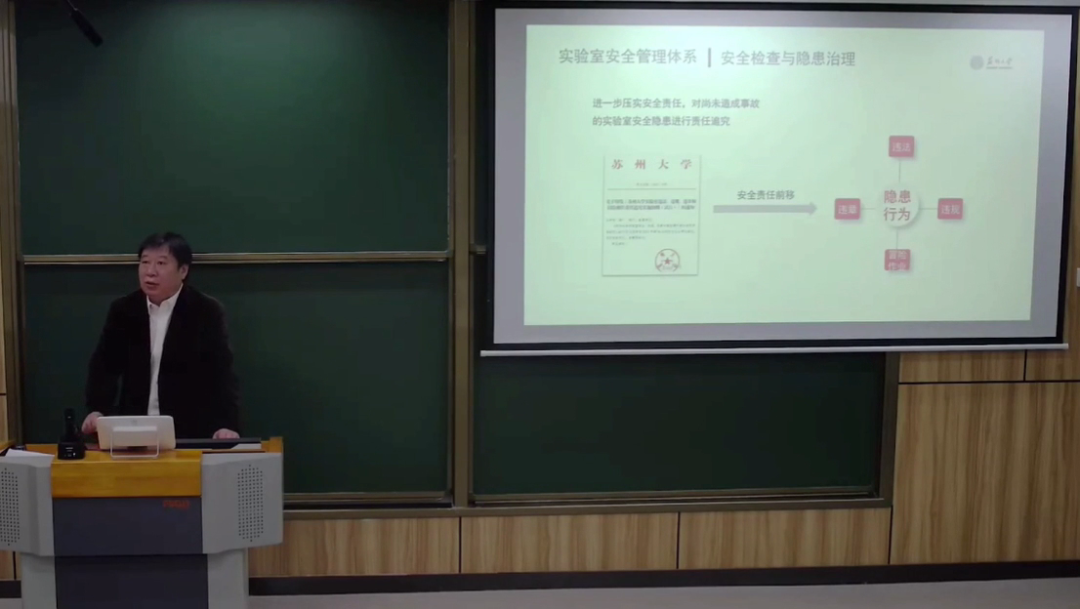 苏州大学实验室与设备管理处处长魏永前作了题为《苏州大学实验室安全管理体系的构建与实施》的报告,从实验室安全管理层级、危险源辨识和风险评价、教育培训与全要素准入、安全检查与隐患治理、应急能力建设等11个方面,详细介绍了苏州大学实验室安全管理工作的优秀经验做法和先进理念。