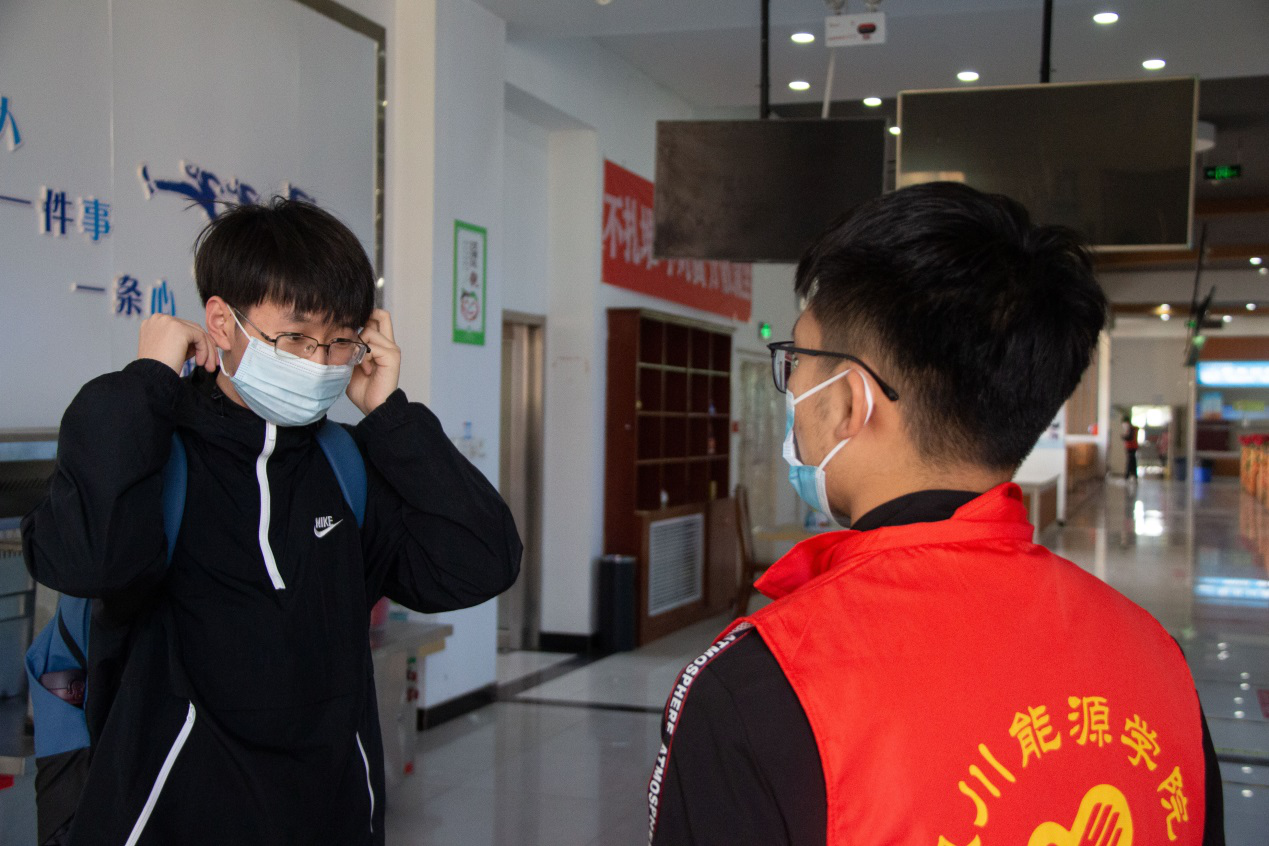 "勇担使命,抗"疫"有我,我愿成为疫情防控的排头兵",这是银能青年志愿者共同的心声。"明天需要50名志愿者协助核酸检测,有想报名的同学请接龙","我报名","我参加","算我一个",每当工作人员在深夜发出招募志愿者信息时,同学们总是第一时间热情回复;"请同学们有序排队,保持一米间距,提前打开健康码",核酸检测现场总能听到志愿者用洪亮的声音温馨提醒;"同学,请佩戴好口罩""请大家保持好1米间隔""同学,请单向隔座就餐"这是校园文明引导组志愿者每天说的最多的几句话,他们迎朝露、伴星辰,冒风雨、顶烈日,准时准点坚守在各楼宇门口、电梯口、餐厅、超市等校园公众场所。党旗所指,团旗所向,哪里有需要,哪里就会有志愿者的身影,奔波在校园疫情防控服务工作中的志愿者们不畏艰苦、冲锋在前,在急、难、险、重任务面前迎难而上,坚守岗位,他们用自己的志愿红来守护全校师生的健康绿。