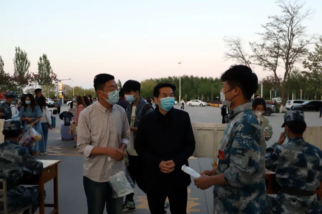 执行校长孟兆怀来到东门重点查看了学生外出登记工作。他强调,学校召开疫情防控领导小组会议,就当前银川疫情以及校园安全稳定形势进行了研判,决定"五一"劳动节学生放假休息五天,但每天只允许20%学生外出。各二级学院务必与保卫处密切配合,细之又细的做好学生外出返校的出入登记、验码、测温工作,扎实做好疫情防控工作,对未按时返校的学生及时联系,避免发生学生安全事故。