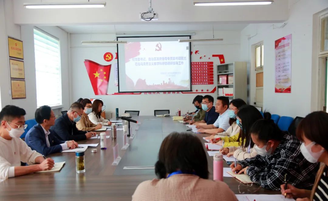 5月6日下午,校党委书记、自治区政府督导专员郭书印到马克思主义教学科研部调研,郭书印一行实地考察了马克思主义教学科研部五星级党组织建设、一流教研室建设等并与思想政治理论课教师进行了座谈交流。