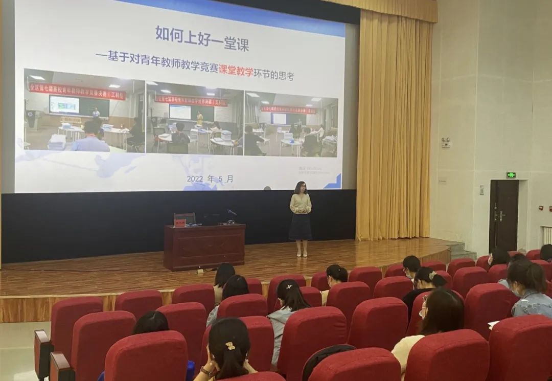 为提高青年教师课堂教学水平,以优良的素质,高水准参加全区青年教师教学竞赛活动,展现我校青年教师风采。充分发挥教学竞赛在提高教师队伍素质中的示范引领作用,推动学校教育教学水平整体提升。学校工会联合教师教学发展中心于5月17日下午,邀请我校机械与汽车工程学院副院长曹凤梅、外国语学院副院长闵翠开展"青年教师教学竞赛课堂教学"辅导讲座活动,活动在明德影院进行。