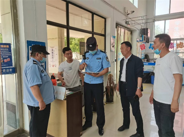 后勤安保组联合永宁县杨和派出所民警对学生宿舍消防器材、餐饮广场食品卫生、校园施工场所进行了检查。重点对学生宿舍消防设施、施工单位建筑起重机械安全保护装置等进行了检查。