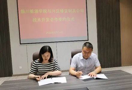 6月16日,银川能源学院科研处处长崔艳宏、电力学院院长马会贤、化学与生物工程学院院长黄瑞民、电力学院副院长刘勇一行四人赴宁夏兴豆缘豆制品有限公司开展技术开发合作协议签约活动。企业董事长张保平、总经理沈岳、副总经理王纪元、办公室主任李振霞参加了签约仪式。