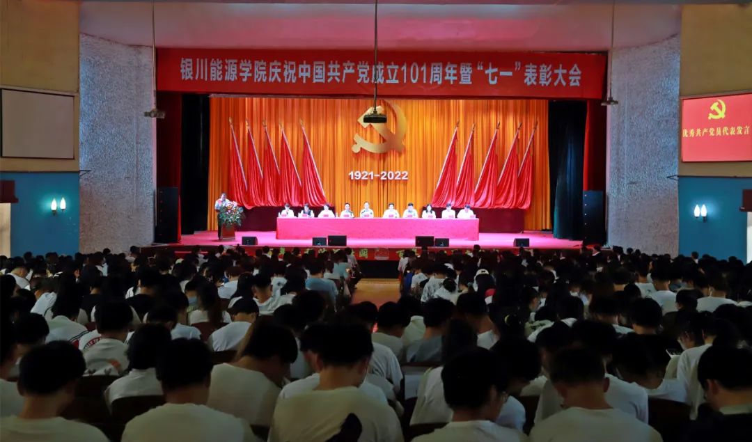 6月28日,银川能源学院在文化活动中心召开庆祝中国共产党成立101周年暨"七一"表彰大会。大会以齐唱《中华人民共和国国歌》开始,全体党员面向党旗重温了入党誓词。大会表彰了67名优秀共产党员、23名优秀党务工作者及13个先进基层党组织。