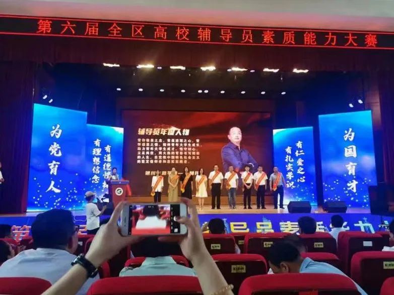 7月4日—7日由自治区教育工委、自治区教育厅主办的"第六届全区辅导员素质能力大赛"在宁夏大学(中卫校区)举行,来自全区20所本、专院校60名辅导员同台竞技,我校三名辅导员林玮、马沛石、周海艳代表参赛。大赛历时四天,采取两轮赛事,分为基础理论测试、案例辨析、案例研讨、谈心谈话四个环节。经激烈角逐,我校辅导员林玮荣获大赛三等奖。同时第六届全区辅导员素质大赛闭幕式上向全区第十三届"最美辅导员""辅导员年度人物"颁发奖杯及荣誉证书,全区第十三届辅导员年度人物林玮荣获表彰。
