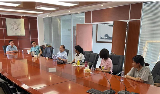 在企业会议室,老师们与企业负责人就人才培养及企业人才需求方面进行了交流。王小宁董事长在会议桌上饶有兴致地向老师们展示了公司的新产品和新项目的进展情况。他表示,企业目前正向着科技化、智能化、信息化机械制研发造方向转型,投入巨资新建了多个现代化的生产项目,对人才的需求非常迫切,特别愿意和学校在人才培养、产教融合、实习就业等方面开展深度合作。