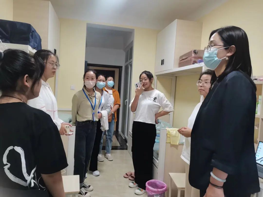 校长助理刘永霞带领辅导院前往学生宿舍看望了新生。