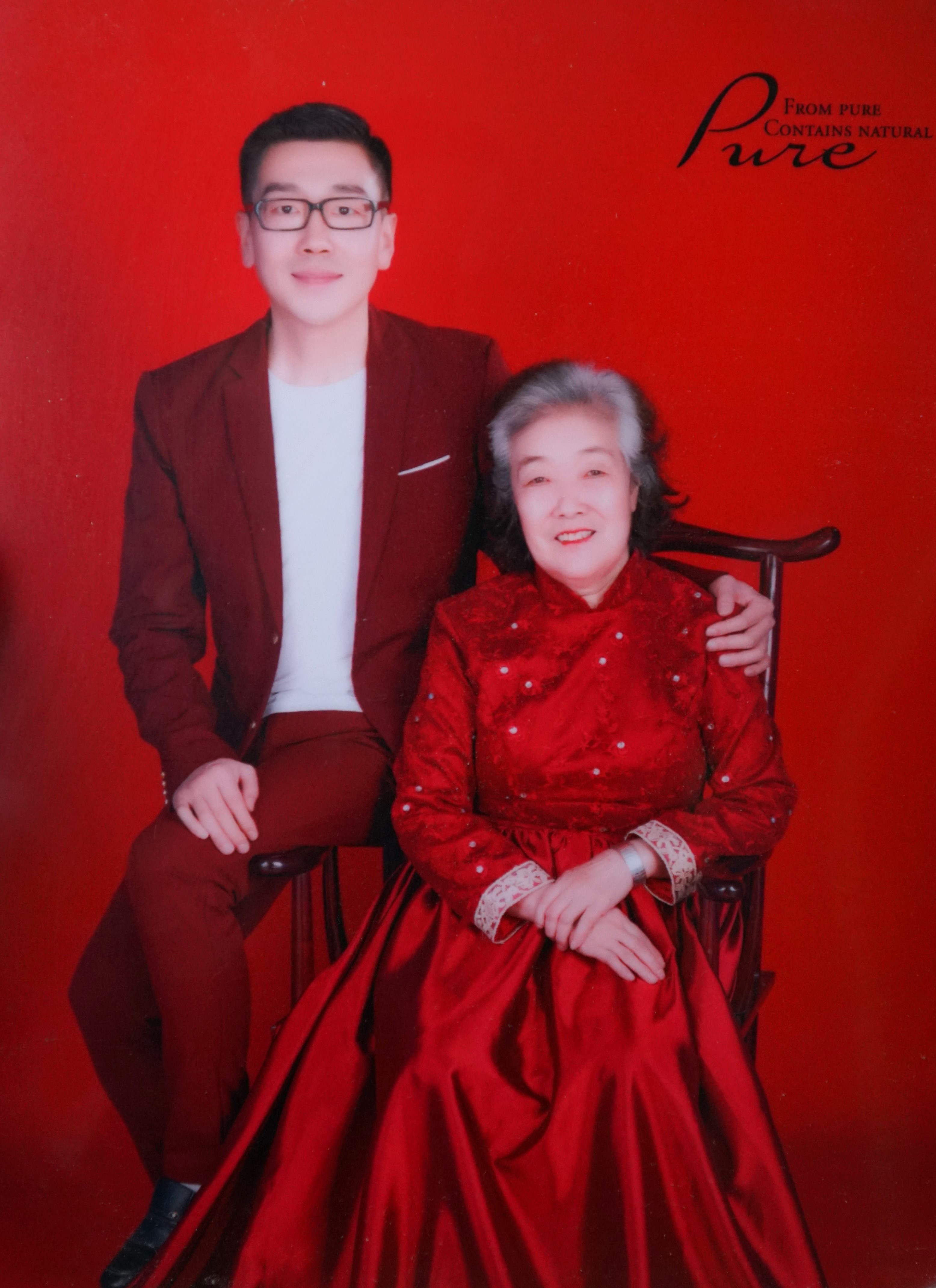 一位开摄影工作室的学生帮赵桂生与母亲拍摄的合照。