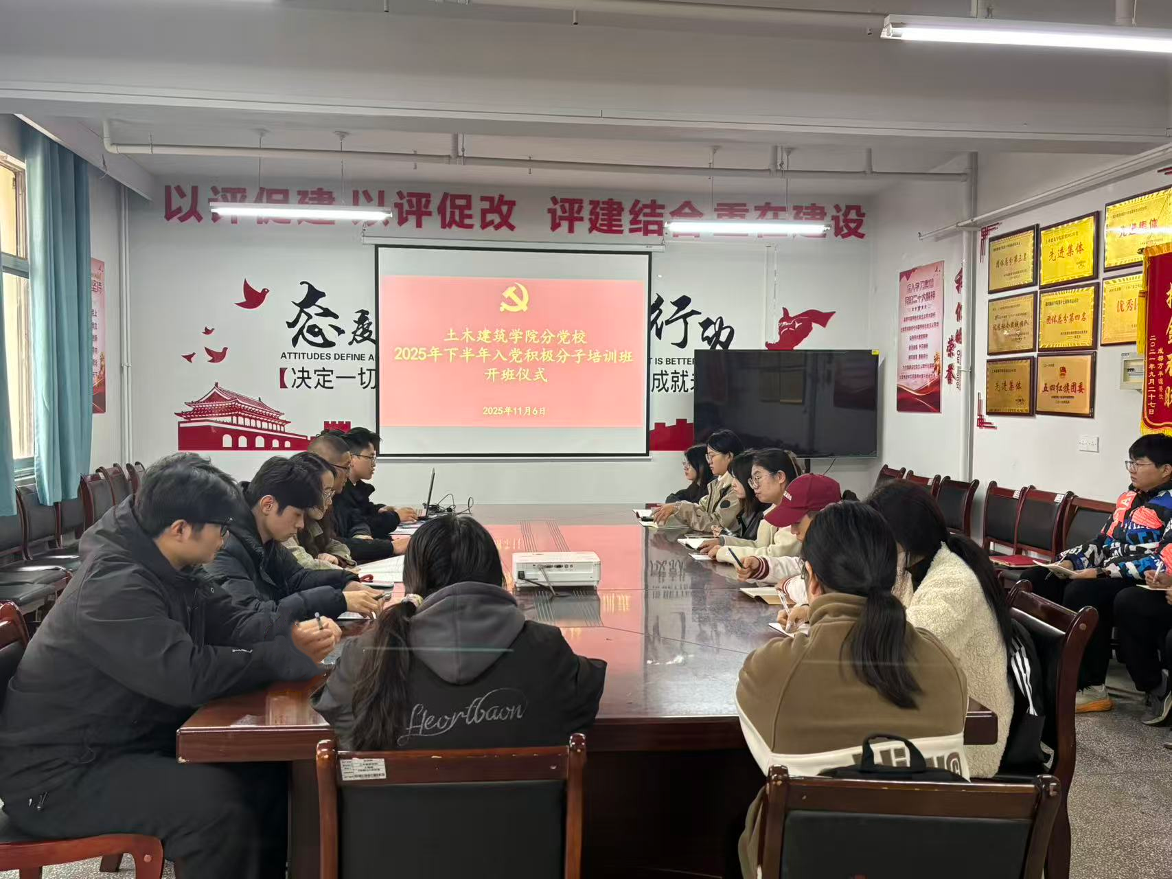 11月6日,土木建筑学院在学院会议室举行2025年下半年入党积极分子培训班开班仪式,旨在切实提升党员发展质量,提高入党积极分子的政治素质和理论水平。