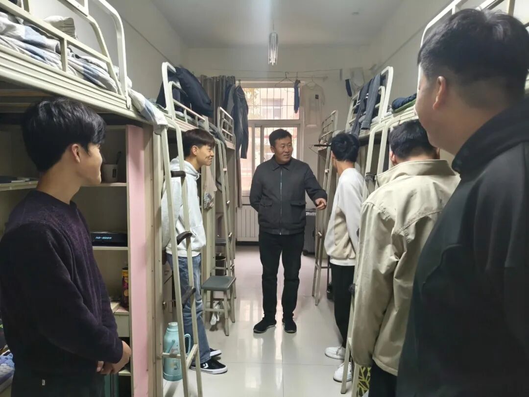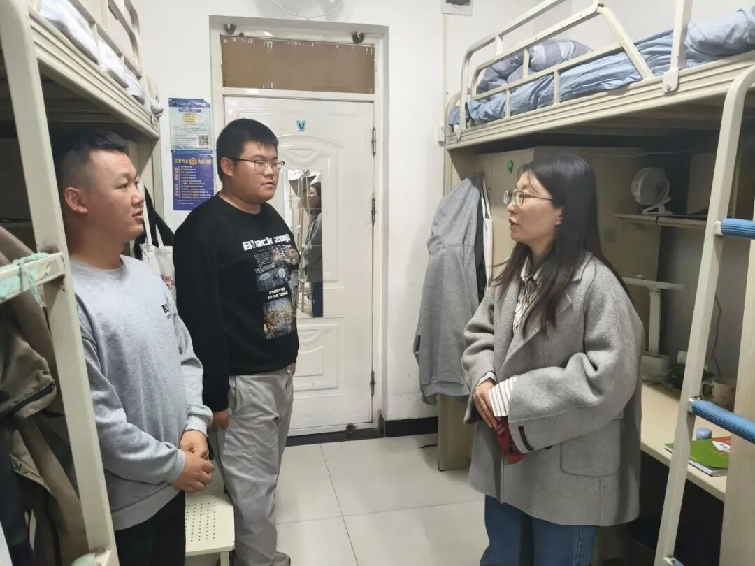 学院党总支副书记韩志鹏带队,全体辅导员、兼职班主任走进学生宿舍,仔细检查学生的物品规制及宿舍卫生,督促学生及时整理与打扫。此外,重点检查大功率电器等违禁物品,检查插线板位置,排查安全隐患,并且嘱咐学生出门前务必关闭电源,对发现问题当场记录,说明危害并监督整改,保障学生的安全,营造良好的宿舍环境。