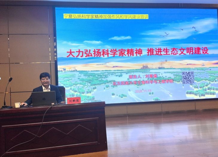 活动中,刘教授作了题为“大力弘扬科学家精神,推进生态文明建设”的专题讲座。他以深厚的学术素养和丰富的科研经验,从“学习科学家精神领会伟大精神内涵、弘扬科学家精神实现科技自立自强、践行科学家精神推进人类社会进步、传承科学家精神坚守人生理想信念”四个维度,系统阐释了科学家精神的时代价值与现实意义。刘教授通过生动案例与深刻理论相结合的方式,既展现了科学探索的严谨求实,又彰显了科技报国的使命担当,引导在场学子深刻认识到弘扬科学家精神对于建设科技强国的重大意义。