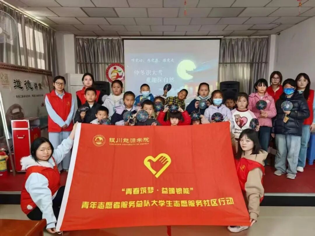 大雪三候,以及腌肉、赏雪等民俗知识;紧接着志愿者带领大家用白醋与小苏打完成“雪花喷发”实验;最后通过互动游戏,在协作解谜中让节气文化的生活意趣更贴近青少年。活动结束后,教育与外语学院青年志愿者协会分会全体志愿者、商务英语2501班团支部和青少年们进行了留念合影。