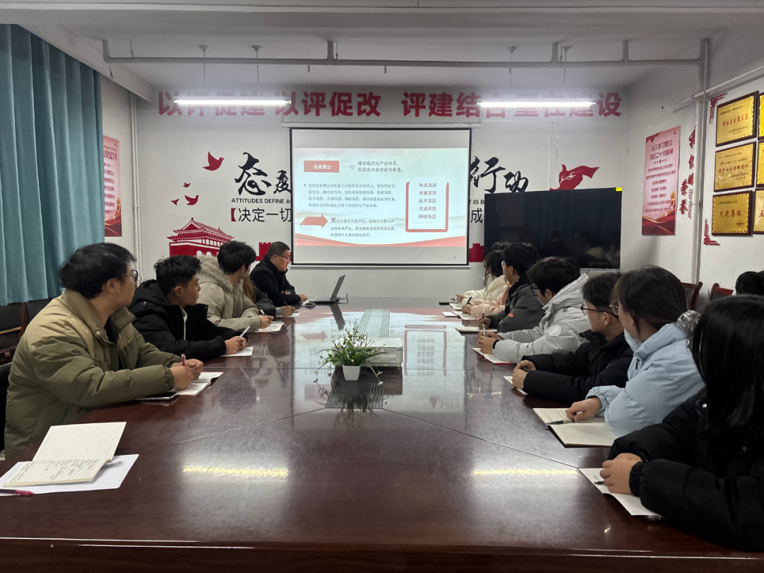 为深入推进党的二十届四中全会精神在青年学生中落地生根、入脑入心,引导广大学生组织学生干部自觉将思想和行动统一到全会精神上来,将个人理想融入国家发展大局,切实将全会精神的思想伟力转化为青年成长的行动自觉,12月8日,土木建筑学院党总支副书记罗海荣在学院会议室为学生组织学生干部宣讲党的二十届四中全会精神。