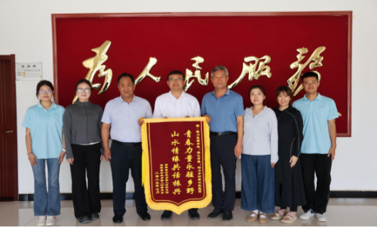 图1-窑儿村赠送实践团锦旗(左二为路苗苗)