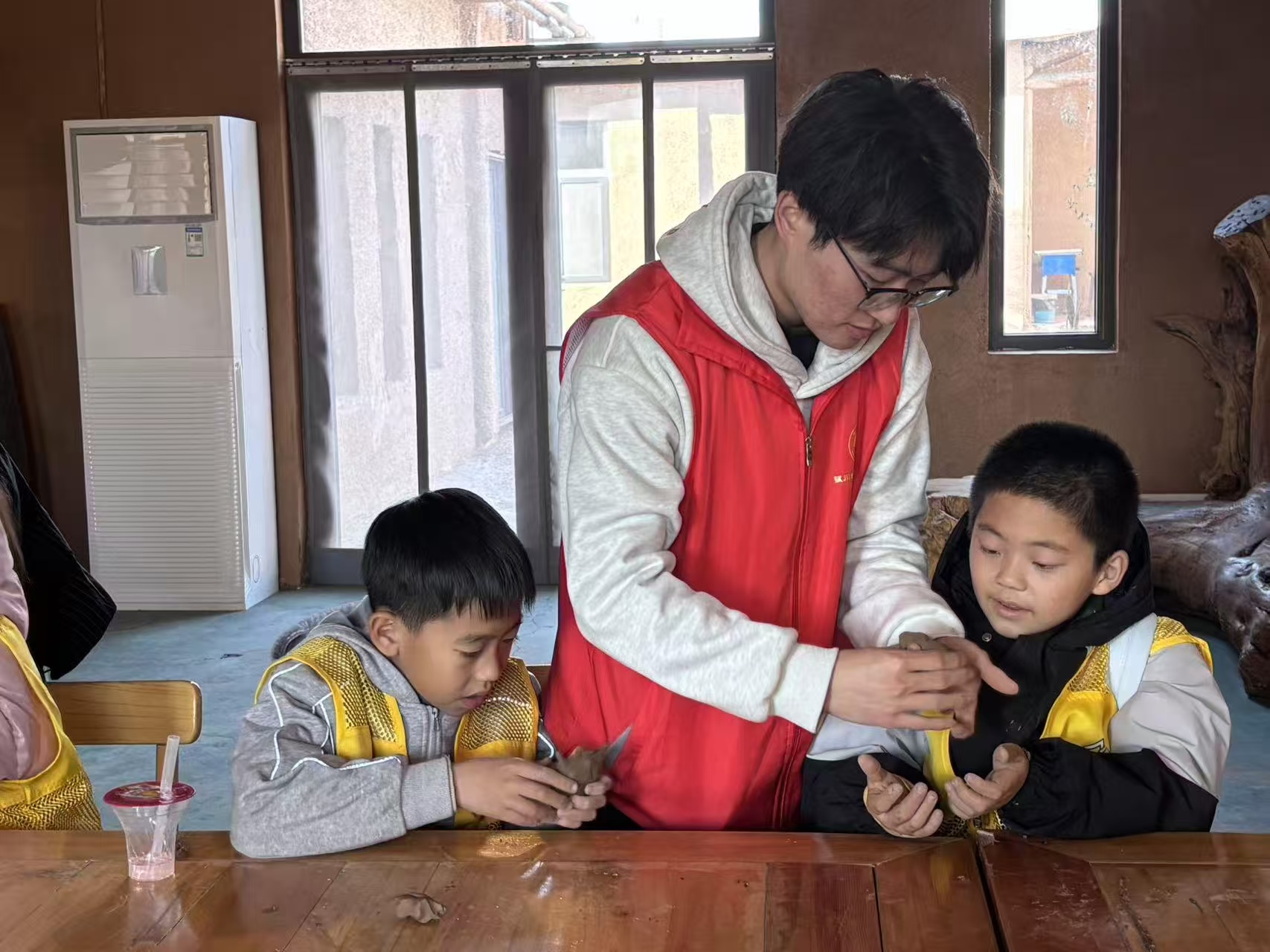 随后,队伍前往星光村泥哇呜非遗基地。在国家级非遗传承人杨达吾德老师的指导下,志愿者们化身“辅助小老师”,手把手协助孩子们取土、揉泥、塑形。面对孩子们的疑问,志愿者们耐心解答;遇到操作困难的孩子,志愿者们细心示范,帮助他们将普通的泥土打造成独具创意的泥塑作品。活动现场,志愿者与孩子们相互配合、其乐融融,每一件完成的作品都承载着孩子们的童真与热爱,也凝聚着志愿者们的陪伴与付出。