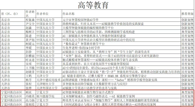 重磅!银川能源学院教师教学案例成功入选教育部2025年教师人工智能应用推荐案例