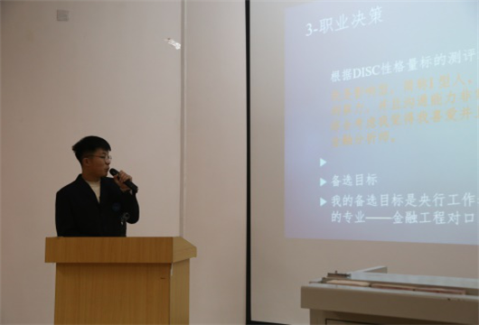 大赛分为职业生涯规划与求职实践两个组别,职业生涯规划组由生涯规划陈述、职业探索陈述、评委提问三个环节组成,考察选手们的自我认知、职业认知、职业决策、发展计划、动态调整等方面的能力。选手们通过展示不同的职业发展路线,阐释自己的目标和定位,并结合自身兴趣特长及社会需求,为自己的职业明确发展方向。求职实践组从自我介绍、模拟面试、即兴问答三个部分进行了展示。通过比赛,强化了学生对于职业生涯规划的认知和了解,提高了学生对于目标职业选择的能力,增强了大学生求职面试的能力和技巧。
