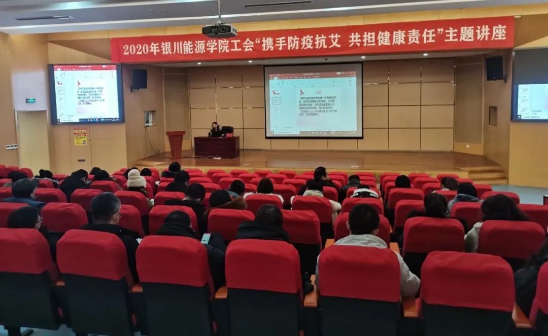 为携手应对新冠肺炎、艾滋病等全球范围内重大传染病挑战,营造参与艾滋病防治工作的良好氛围,进一步普及预防艾滋病的知识,引导我校教职工正确认识艾滋病,切实推进艾滋病防控工作。12月8日下午4点,学校工会邀请永宁县人民医院艾滋病门诊医生任立芳来我校做"携手防疫抗艾 共担健康责任"主题讲座。
