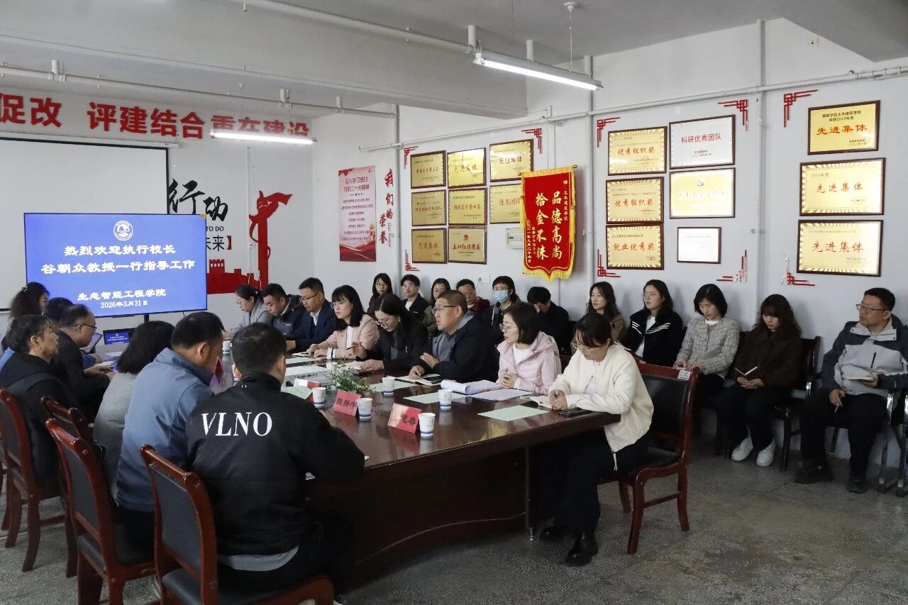 3月31日,执行校长谷朝众教授深入生态智能工程学院调研指导工作,实地察看了学院教学、实践和办公场所。通过听取汇报和座谈交流深入了解了学院概况、师资队伍、教学条件、人才培养成效及下一步发展工作思路。他“时间早、基础好、师资强、资源丰、科研硕、成果多、思路清、方向明、干劲足”27个字,对学院所做的工作给予了充分肯定。