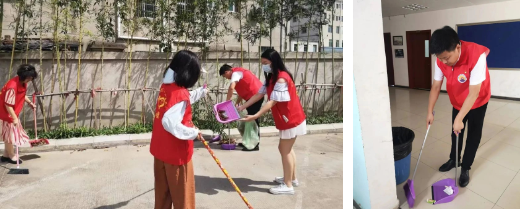 在清理活动中,每一位党员志愿者不畏酷暑,积极发挥奉献精神,学校领导身先士卒,志愿者们不怕脏、不怕累,积极参与,认真清理校园周边垃圾、杂草。打扫后的校园、马路焕然一新,整洁有序。