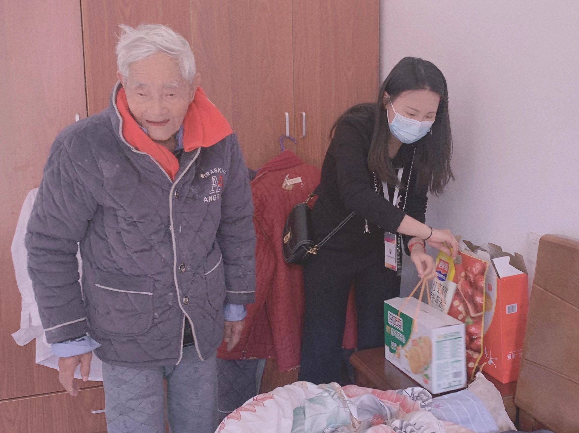 首先,在敬老院万院长的带领下,党支部书记李豪、办公室主任邹静详细了解了老人们的日常生活环境,同时走进房间为老人们送上饼干和麦片慰问品,并与老人们畅快谈心,嘱咐老人们要注意身体,保持积极、乐观的生活态度。