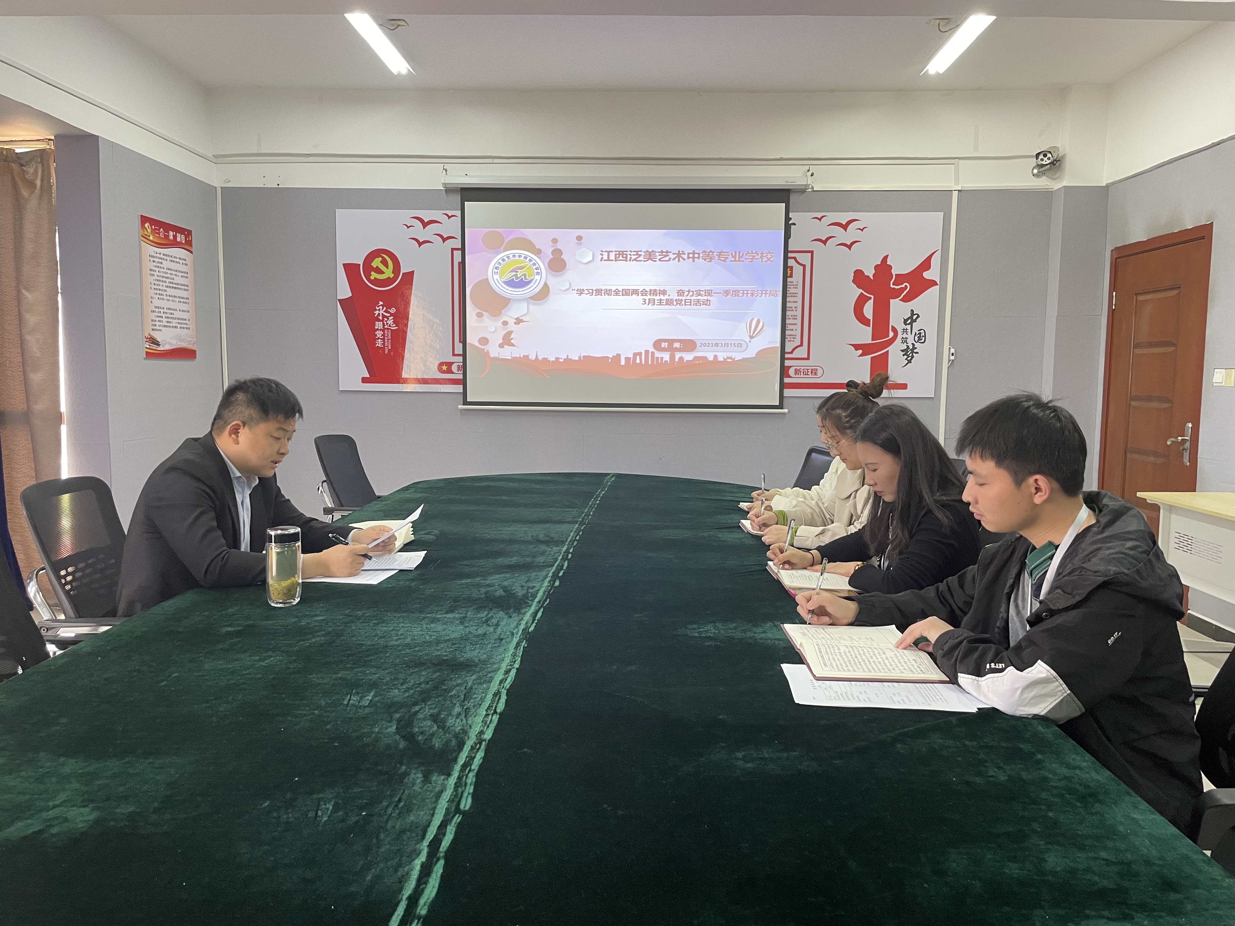 为深入学习贯彻党的二十大精神和全国两会精神,引导广大党员坚定不移跟党走、携手奋进新征程,践行新时代共产党员的先锋模范作用,3月15日,江西泛美艺术中等专业学校党支部开展“学习贯彻全国两会精神,奋力实现一季度精彩开局”三月主题党日活动。活动由党支部书记、执行校长李豪主持,全体党员参加。