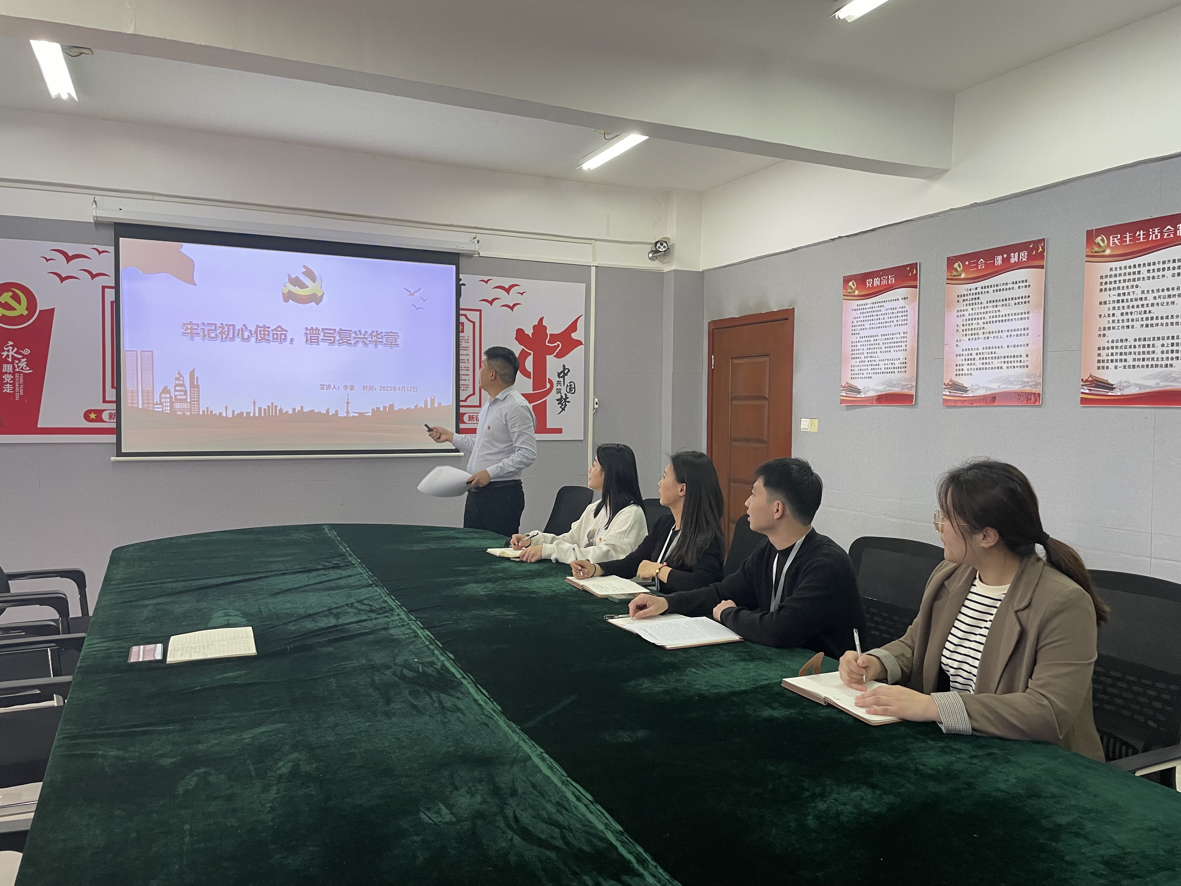 为引导全体党员从党的光辉历史汲取奋进力量,支部书记李豪给大家上了一堂以《牢记初心使命,谱写复兴华章》为题的党课。同时,组织缴纳4月份党费。