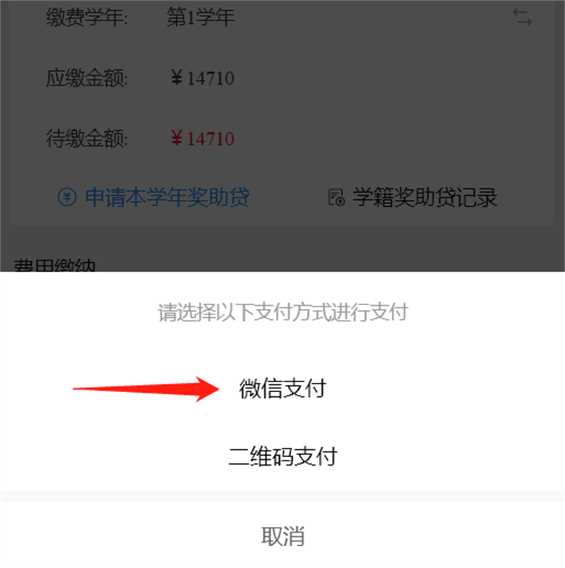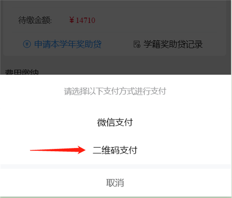 2. 【二维码缴费】,用他人微信号完成学费的支付。