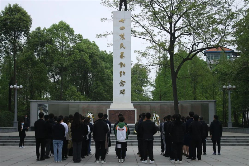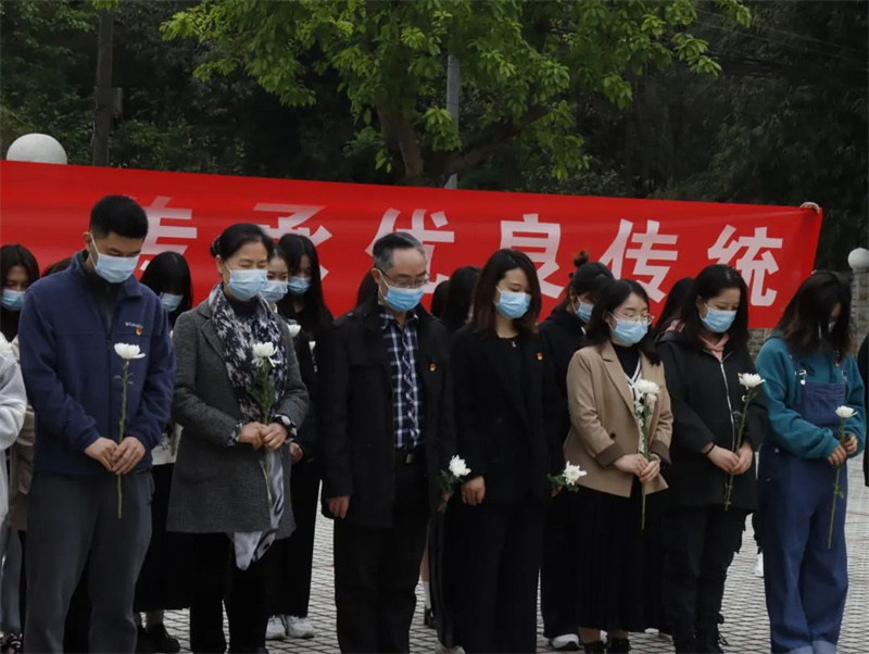 此次清明节祭扫仪式由学院党委、团委联合举行,旨在传承红色基因、赓续红色信念,使得党员师生从红色基因中汲取前进的不竭动力。两校区领导、团委学生代表近100人参加。