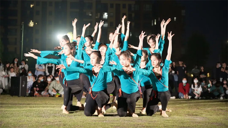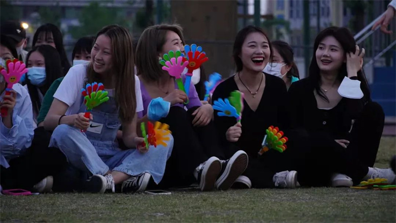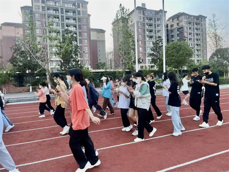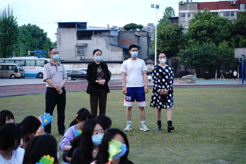 传媒艺术学院组织学生参加校园拉歌活动,学院党委书记周世伟、学院副院长兼崇州校区综合办主任谢桂兰、崇州校区综合办副主任王林、传媒艺术学院副院长何柳、学生处副处长吴超艳到场关心关爱学生并参与其中。