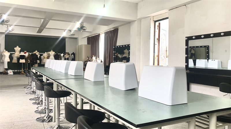 拥有换衣间、缝纫机、熨烫台、锁边机、化妆镜台等,承担服装立体剪裁、服装制版、年代妆、时尚新娘设计、舞台戏剧化妆设计等课程。