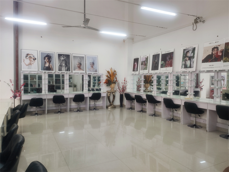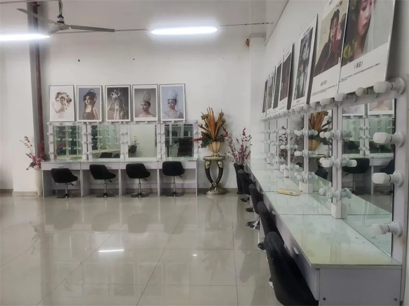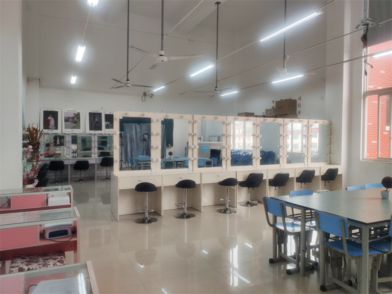 拥由化妆镜台、美甲桌、美发支架、换衣间等,承担化妆造型、美甲护理等课程内容。
