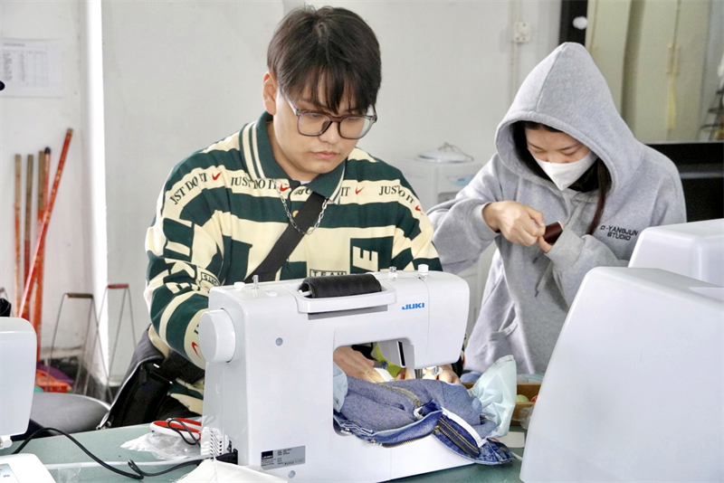 人物形象设计专业师生为学校对口支援石渠县爱心捐助的服装进行改造和修剪。