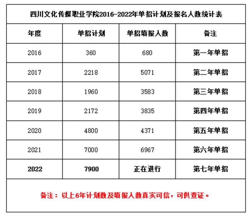 从2016年四川文化传媒职业学院开始单招以来,连续6年都得到了家长学生的信任和认可,单招填报人数都是位列四川省前几名,一所学校受到认可不是短期的,而是多年办学实力和口碑的积累。