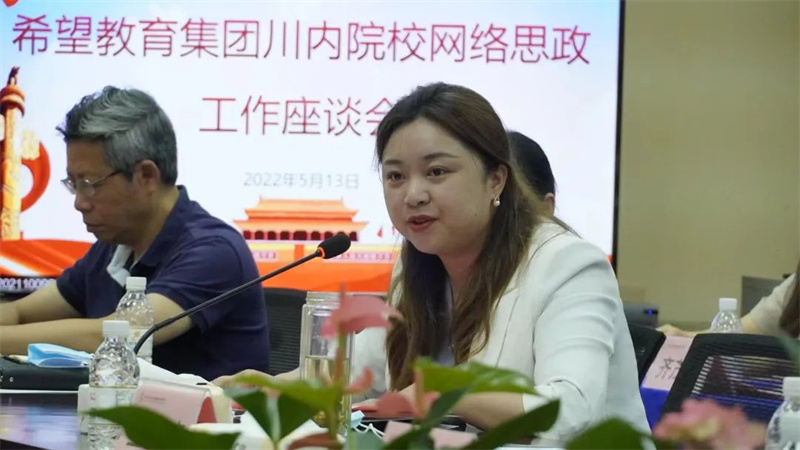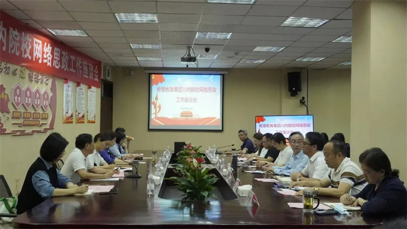 5月13日,希望教育集团为深入探讨网络思想政治教育工作,在我校召开川内院校网络思政工作座谈会。座谈会邀请到省教育厅宣思统战处调研员王艳丽、省易班建设与发展中心指导老师刘乔、西华大学易班建设办公室指导老师王燕晶参加。集团教指委常务副主任娄群伟,教指委副主任李能武、汪成慧参会,集团宣传、学工管理、党群学工部门负责人及五所院校网络思政建设工作相关负责人参加会议。教指委副主任李能武主持座谈会。