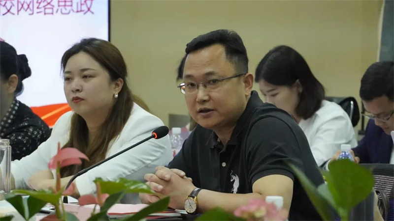 四川省教育厅宣思统战处调研员王艳丽在会上传达了5月5日全省思政课教师和辅导员会议精神。对五所院校网络思政工作提出以下建议:一要引导学生用好网络思政平台,强化平台的思想引领和学生服务功能,增强网络思政精准性;二要加强网络思政工作队伍建设,不断健全网络思政力量;三要加强对外交流,与教育厅思宣部门、川内高校多多交流工作经验,取长补短。