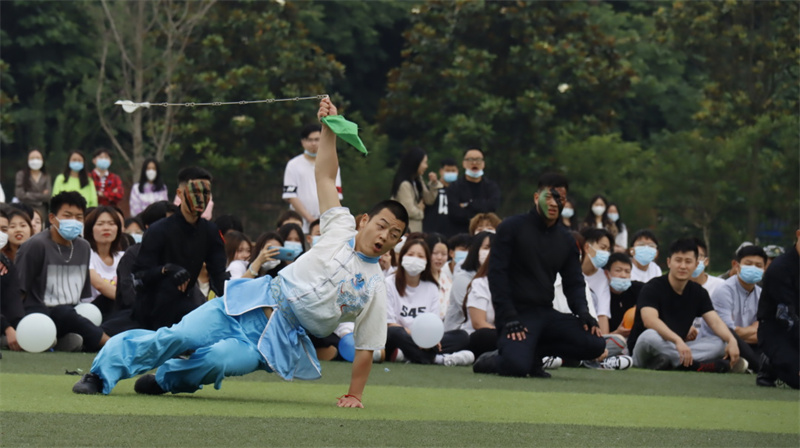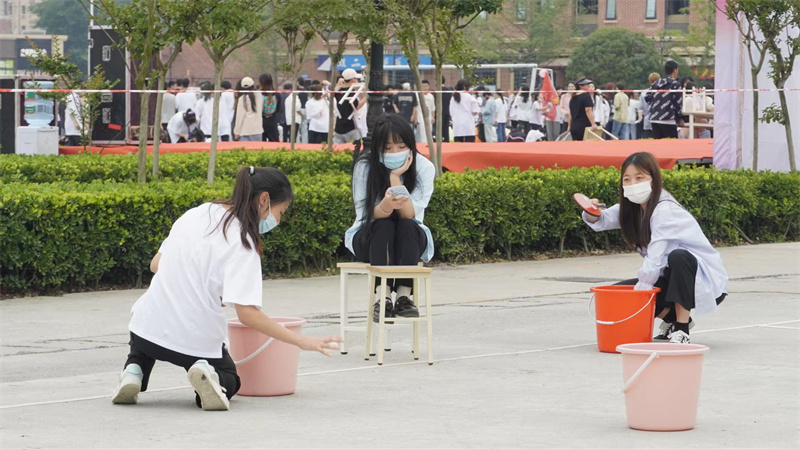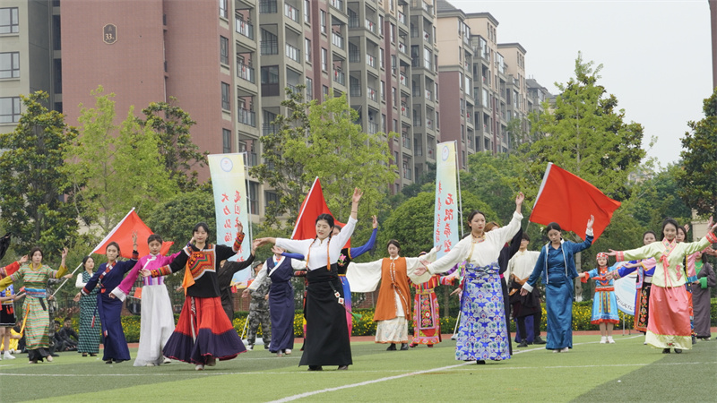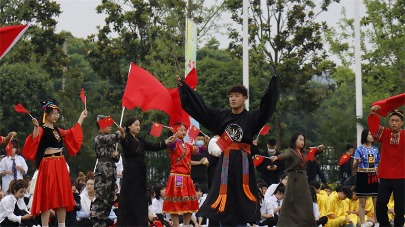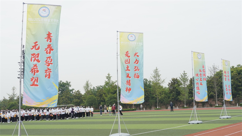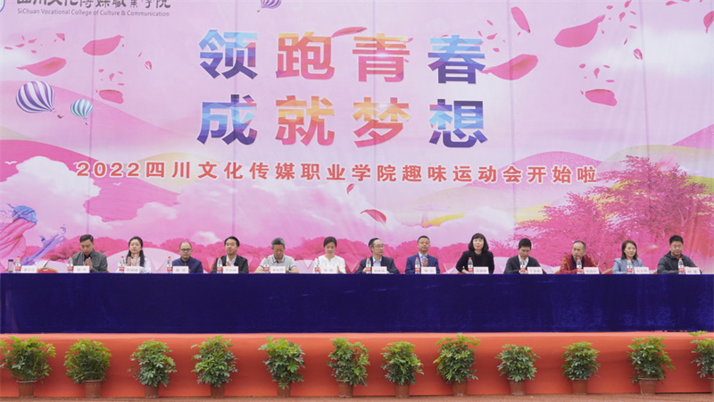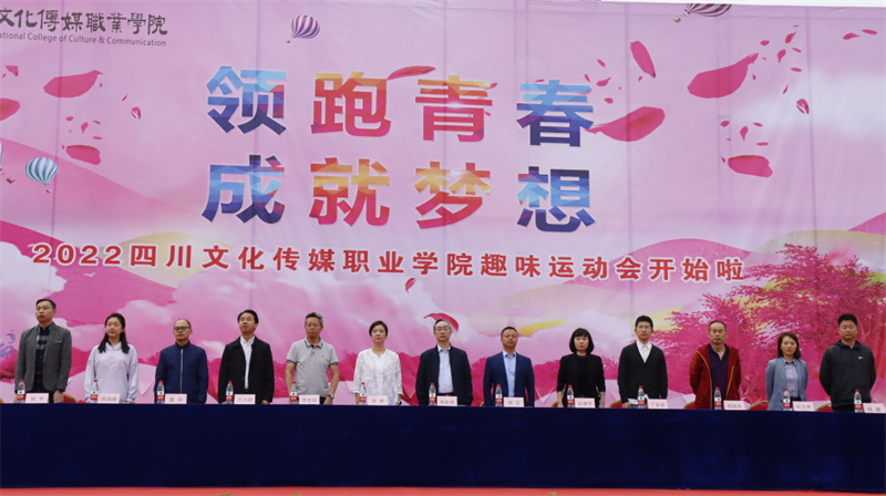 掌声热烈,欢声四起。5月17日,四川文化传媒职业学院2022年春季趣味运动会在绵竹校区运动场拉开帷幕。学校领导与绵竹校区师生一同参加运动会开幕式。