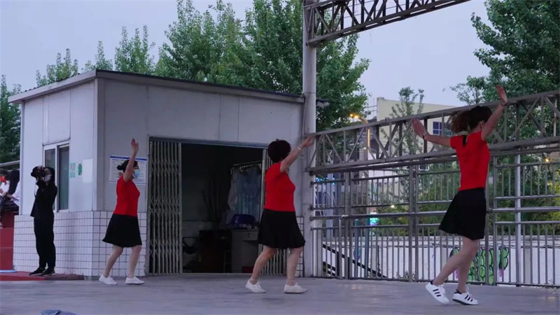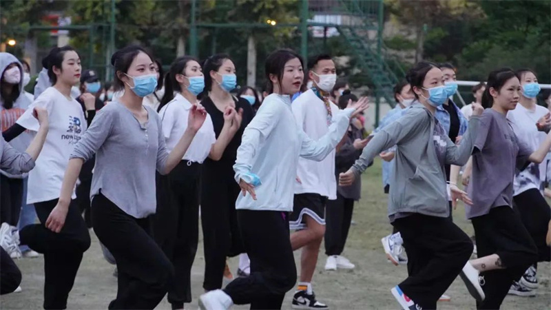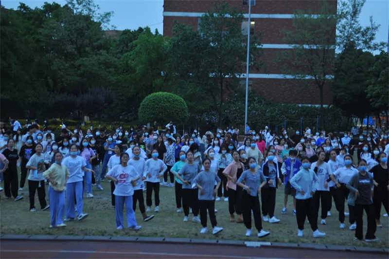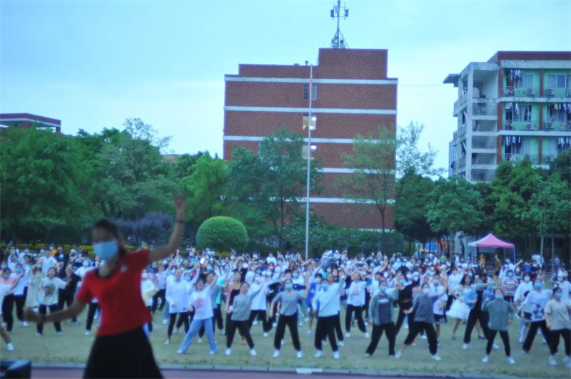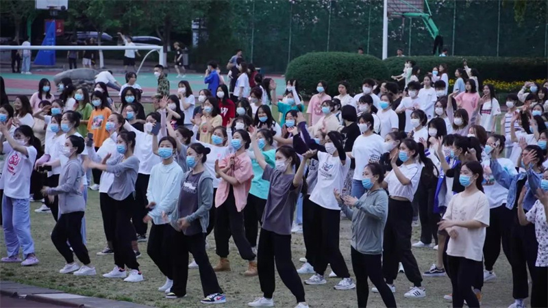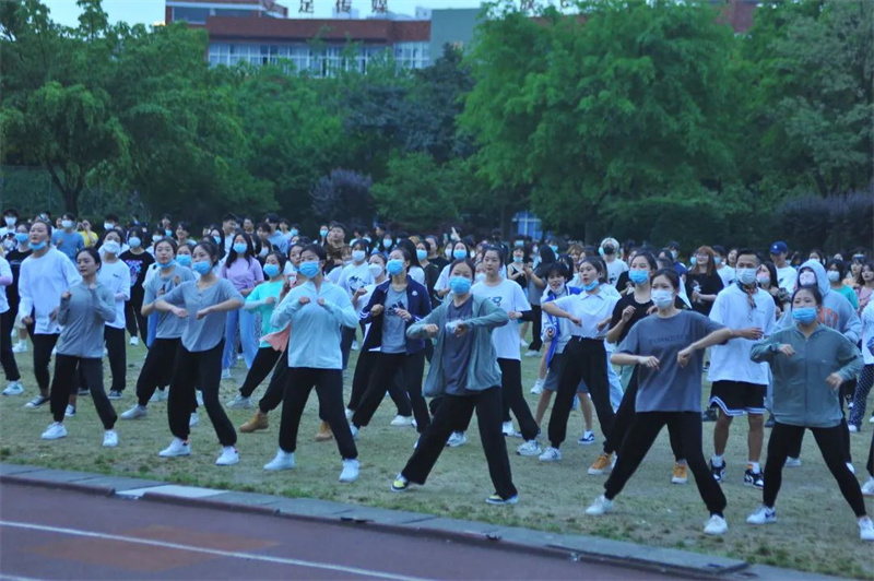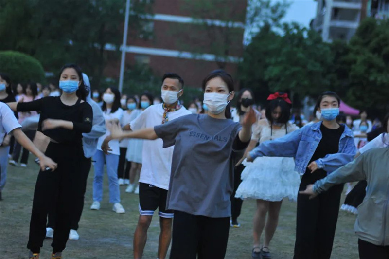 本次广场舞活动由学校机关第一党总支、校团委一同主办,共吸引了近500名师生参与。大家自觉佩戴口罩、保持间距,但这丝毫没有影响大家参与的积极性。转眼望向主席台,是三位身着红色舞蹈服的领舞阿姨。“很开心、很好玩,没想到疫情宅校期间还能体验原滋原味的广场舞!”参加活动的一位学生讲到。