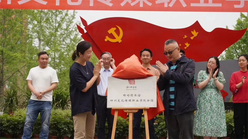 5月24日上午,绵竹市图书馆四川文化传媒职业学院分馆揭牌仪式在我院绵竹校区学习强国广场举行,绵竹市图书馆馆长王伟、副馆长丁洋,学院党委书记周世伟,党委副书记、执行院长罗琴参加了揭牌仪式。