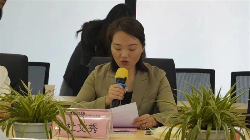 学前教育学院副院长杜文秀副教授宣读《关于成立学前教育专业建设指导委员会通知》文件,学院副院长张倩、院长助理于兴财颁发专业建设指导委员会聘书。