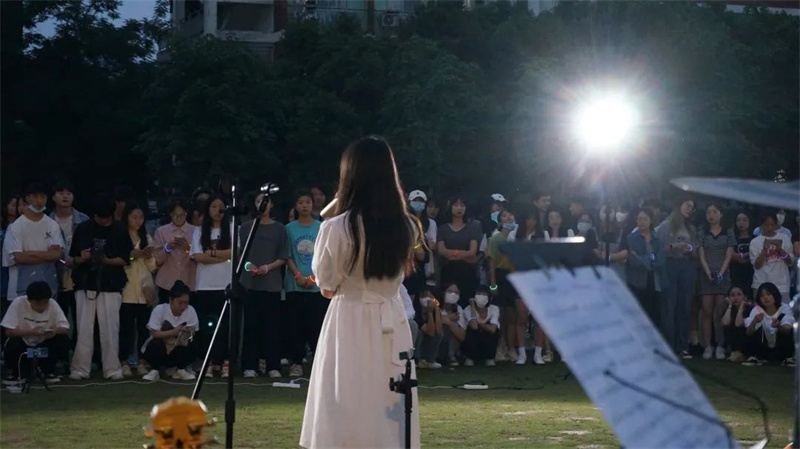 《传奇》、《南山南》汉语藏语双重合唱的版本歌声嘹亮悠长,仿佛在讲述着故事和远方,向同学们彰显了文传独特的民族魅力。这恬静悠扬的民谣让校园每一处都能感受到音乐之美,也把现场氛围再次推向高潮,赢得了同学们的欢呼喝彩。