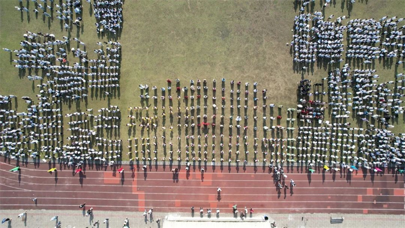 学校领导来到运动场和同学们齐跳《本草纲目》毽子操,欢声笑语一片欢腾。