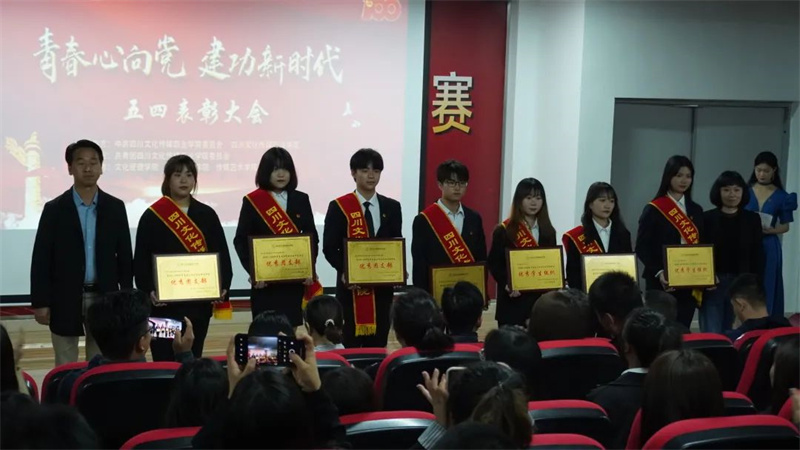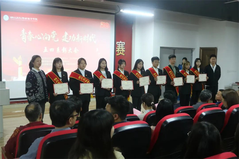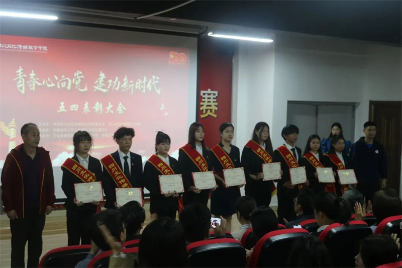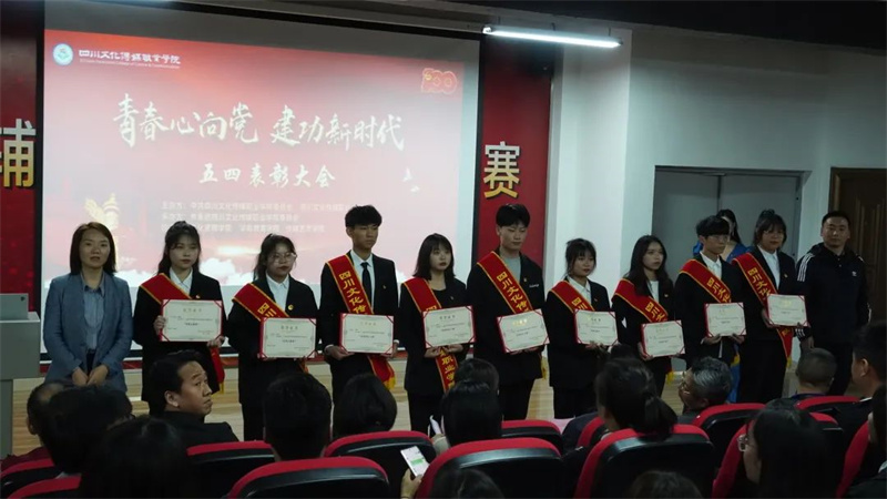 为深入学习贯彻习近平总书记在庆祝中国共产主义青年团成立100周年大会上的重要讲话精神,积极培树典型,表彰先进。近日,四川文化传媒职业学院“青春心向党、建功新时代”庆祝中国共产主义青年团成立100周年暨五四表彰大会在绵竹校区九教报告厅隆重举行。学院领导、青年教师、青年学生代表近200人参加大会,共青团绵竹市委书记杨振强作为受邀嘉宾出席大会。