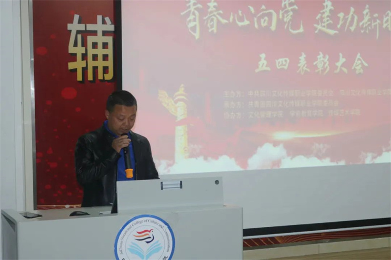 学院副院长李忠民上台宣读《共青团四川文化传媒职业学院委员会关于2021-2022年度五四评优表彰决定》,李院长代表学院各级领导及部门向过去一年来为学校辛勤工作、无私奉献的广大共青团干部表示由衷的感谢,并向本次大会受到表彰的集体及个人表示热烈的祝贺。并希望他们未来在工作实践中,把荣誉化为动力,站在新的起点上,确立新的目标,再接再厉,争当伟大理想的追梦人,争做伟大事业的生力军,让青春在祖国和人民最需要的地方绽放绚丽之花。
